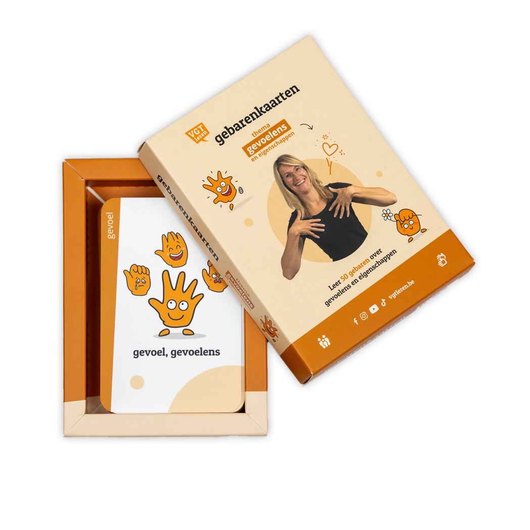 Wil je iemand meer info geven over Vlaamse Gebarentaal of over hoe ze kunnen omgaan met doven? Heb jij zelf of iemand anders interesse in gebaren? Met deze waaier heb je een snelgids bij de hand en kan je hen een basis van gebaren tonen. Een ideale kennismaking met Vlaamse Gebarentaal.